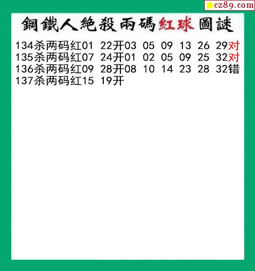 钢铁人杀两码红球137期双色球图谜